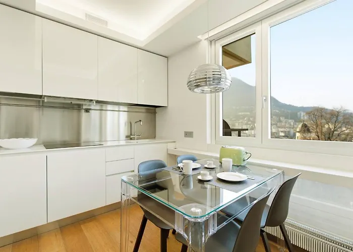 - ❓Is there a kitchen available at this spacious Generoso Luxury Lake View Suite In Lugano for guest use?Yes, this spacious Generoso Luxury Lake View Suite In Lugano is furnished with a fully equipped kitchen and offers an oven and a dishwasher as well.